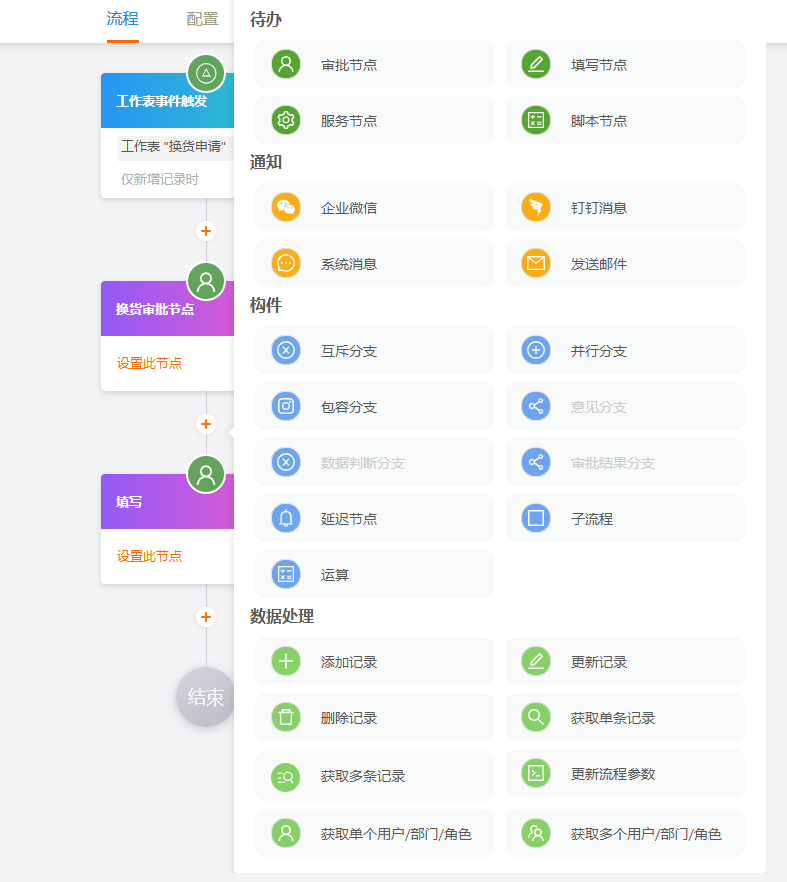 丰富的流程组件可实现你的业务审批、可以对数据进行加工,实现数据的整合、计算、汇总;可跨表单、跨应用处理数据, 实现业务流程自动化,业务处理有条不紊。