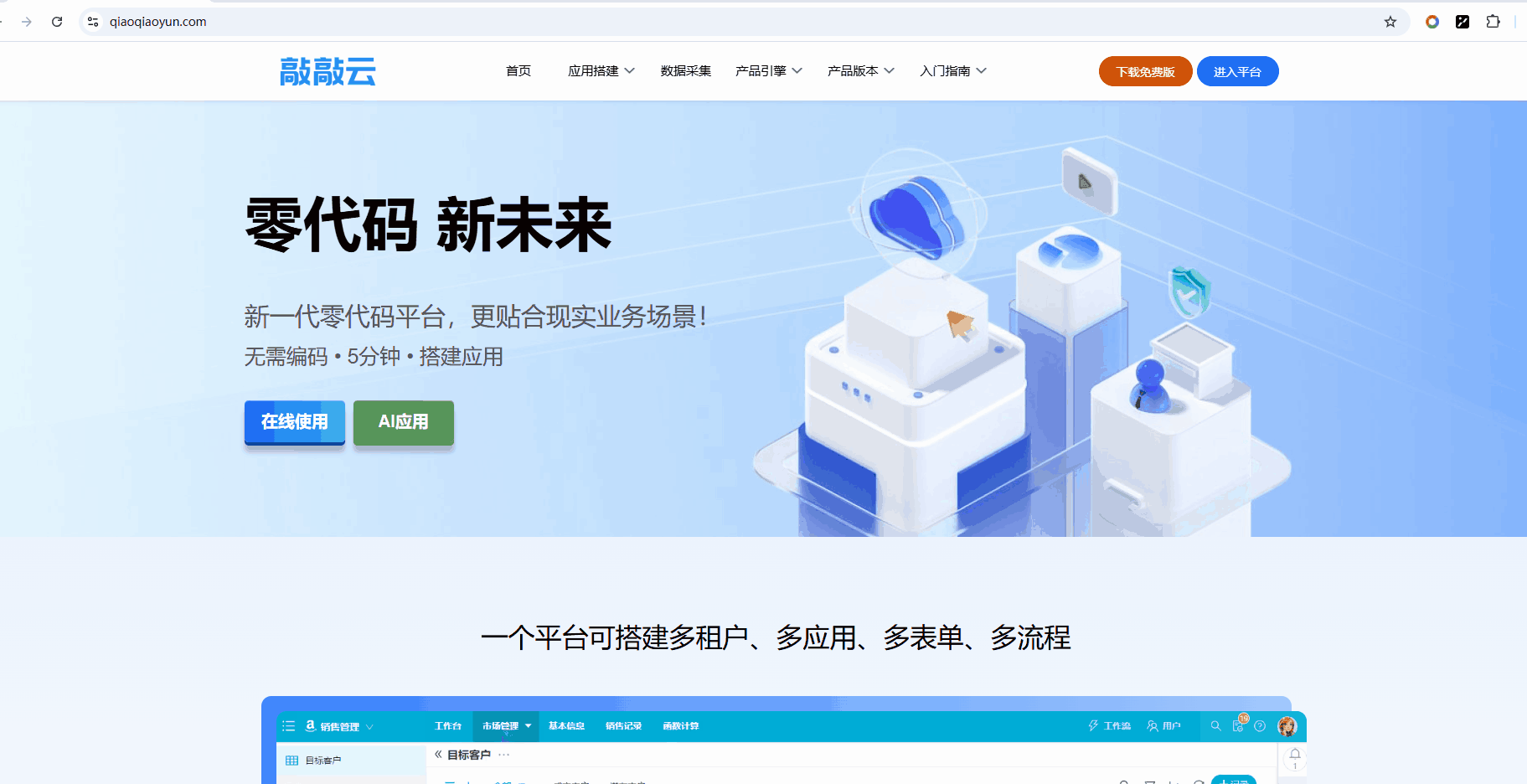 敲敲云是一个创新的 APaaS(应用平台即服务)零代码平台,结合了 AI 应用开发和知识库管理,旨在帮助企业快速构建个性化的业务应用。