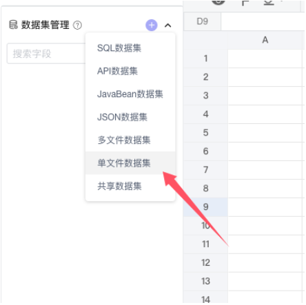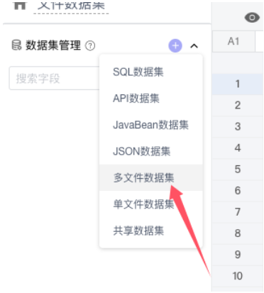 积木报表支持用户上传符合格式的数据文件作为数据集,数据集使用方法与其他数据集一样。文件数据集分为单文件数据集和多文件数据集。
