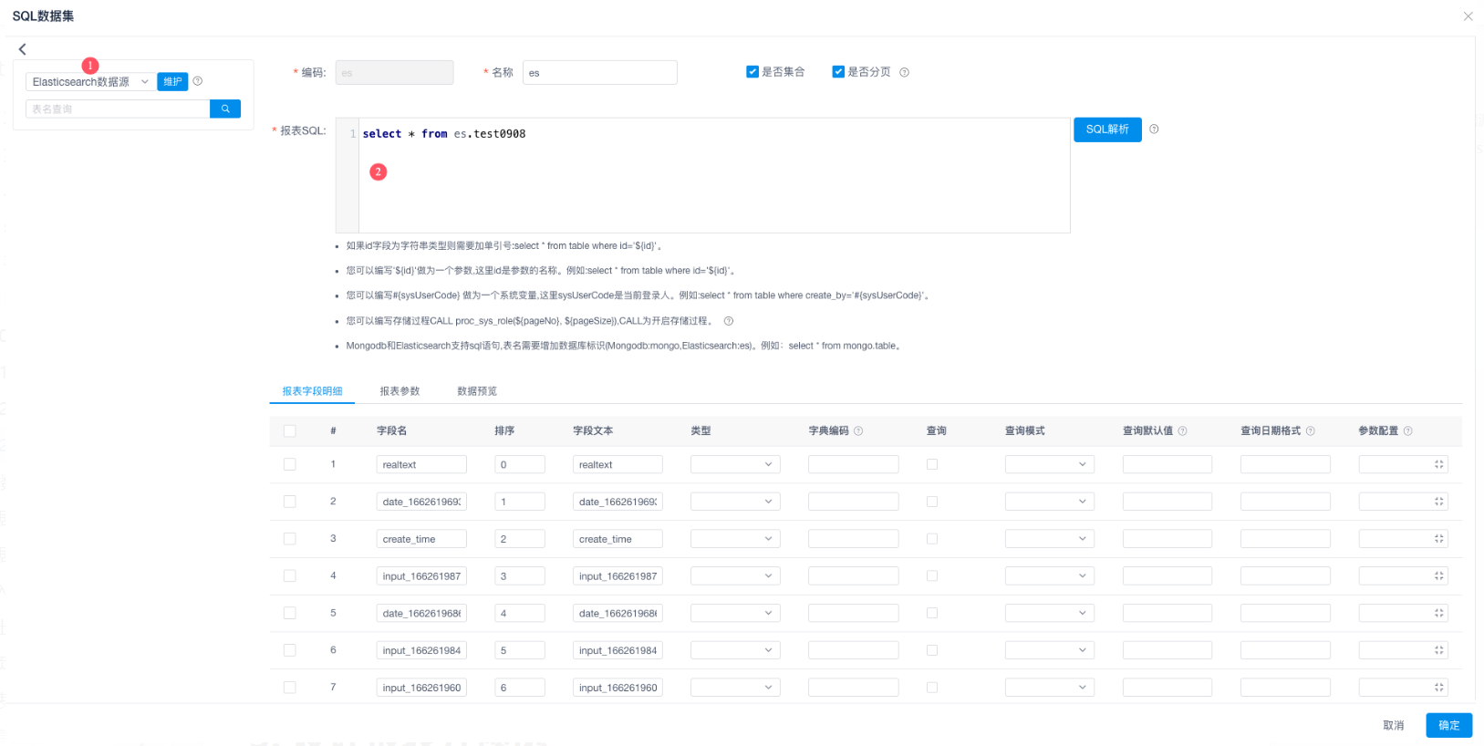 积木报表 version 1.9.2+ 支持连接Elasticsearch,并且使用sql语句查询es的索引,SQL语句支持分页、关联、分组、排序等。