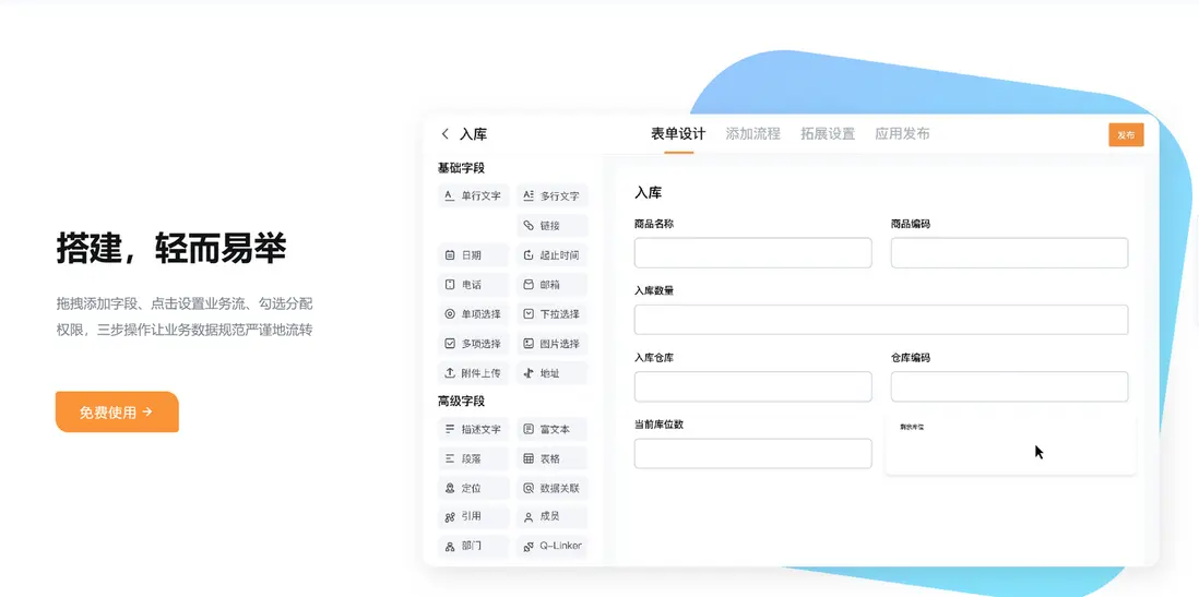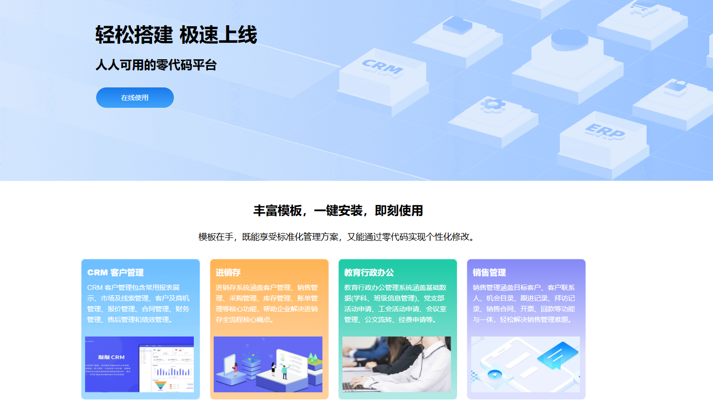 无代码系统搭建平台,用户无需代码即可搭建专属管理系统,且深度集成了AI技术,提供AI套件支持。