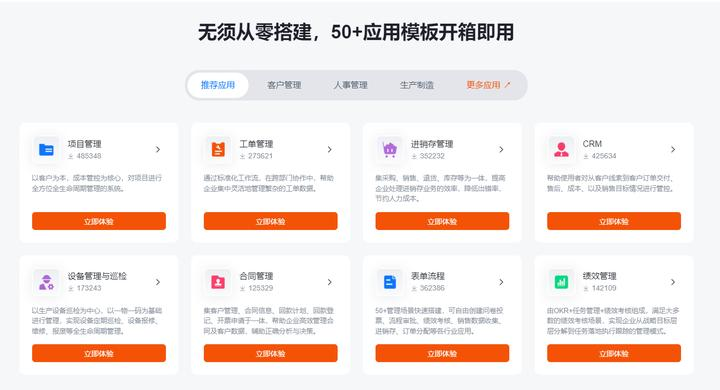 该平台能帮助企业快速搭建个性化业务应用。用户不需要代码开发就能够搭建出用户体验上佳的销售、运营、人事、采购等核心业务应用,打通企业内部数据,也能够通过 API 和 Webhook 和其他系统对接。平台内的自动化工作流还可以实现审批、填写等控制流程和业务自动化,如果用户企业使用钉钉或企业微信,也可以将平台内搭建的应用直接对接到工作台上。