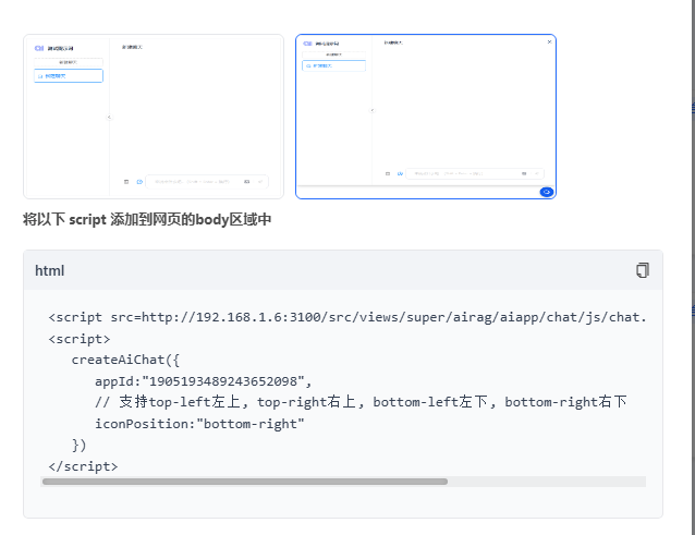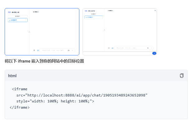 <iframe>代码将 AI 应用嵌入至外部网站。