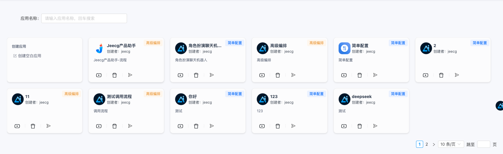本小节介绍如何在系统中创建和管理 AI 应用。AI 应用是基于人工智能(AI)技术,结合大语言模型(LLM)、知识库、向量搜索和自动化工作流构建的智能化解决方案。它能够理解、处理和生成信息,提升工作效率,实现任务自动化,并优化用户体验。例如 AI 搜索、AI 翻译等应用场景。