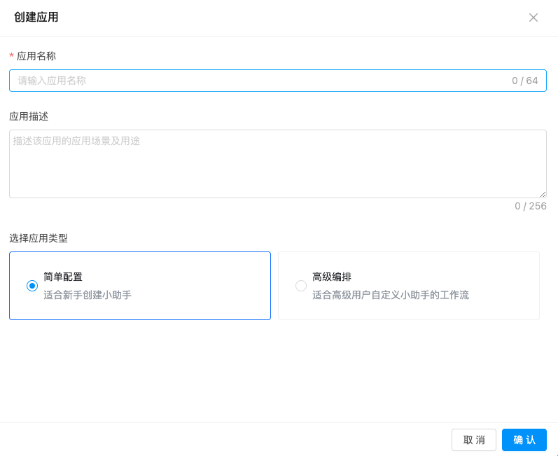 - 简单配置:基于 LLM 直接构建的对话助手,适用于轻量级 AI 交互场景。