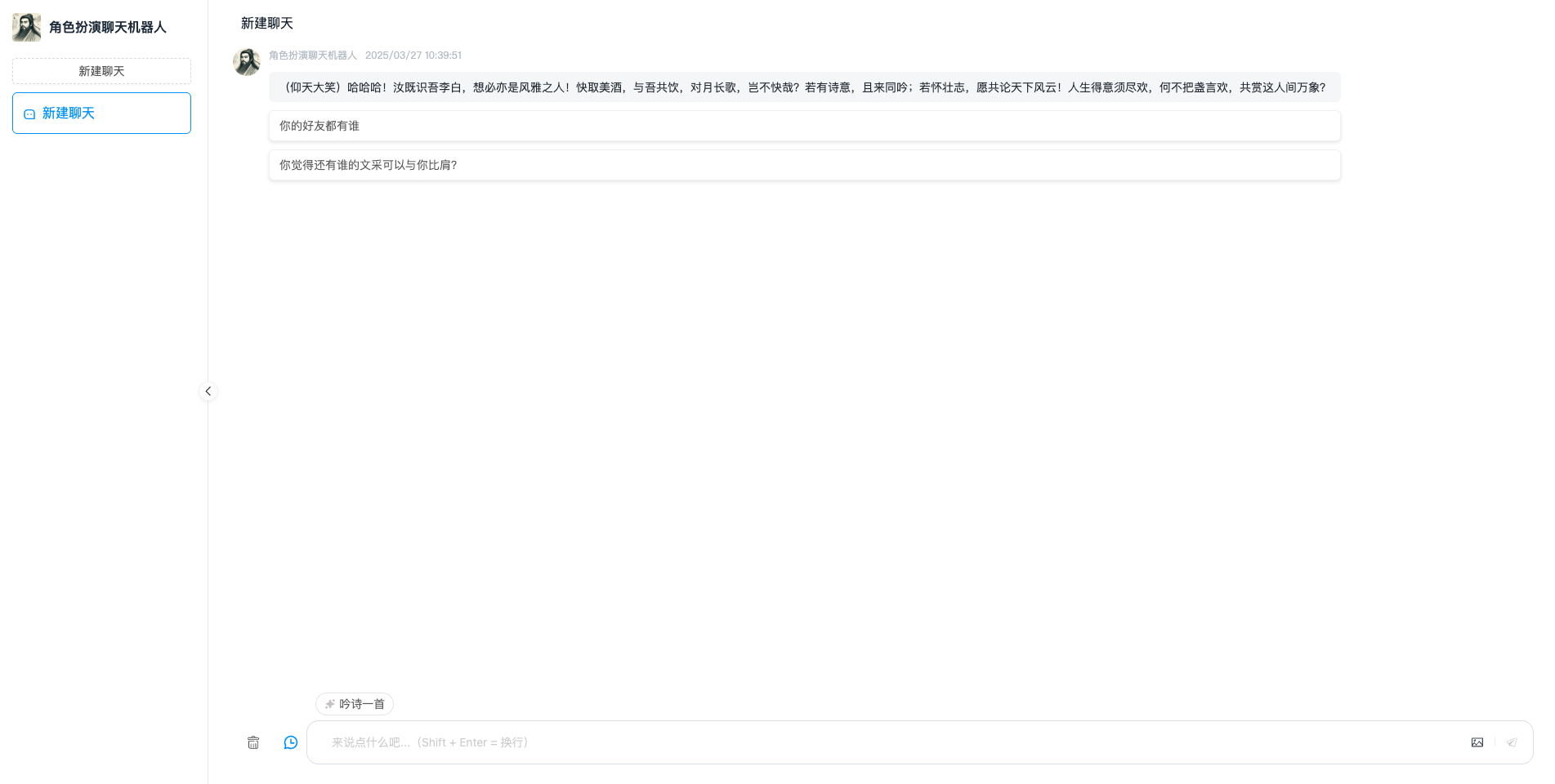 - 左侧:所有聊天会话记录,可通过"新建会话"创建新对话。