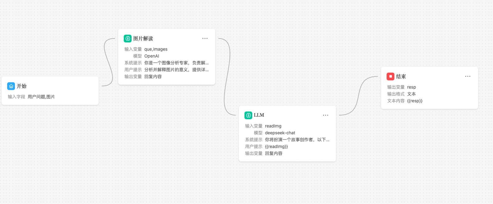 用户提供一张图片,让擅长图片理解的OpenAI来理解图片的内容,然后让擅长中文的DeepSeek根据图片的内容生成一个富含创意的文案,这样就完成了一个复杂的任务。
