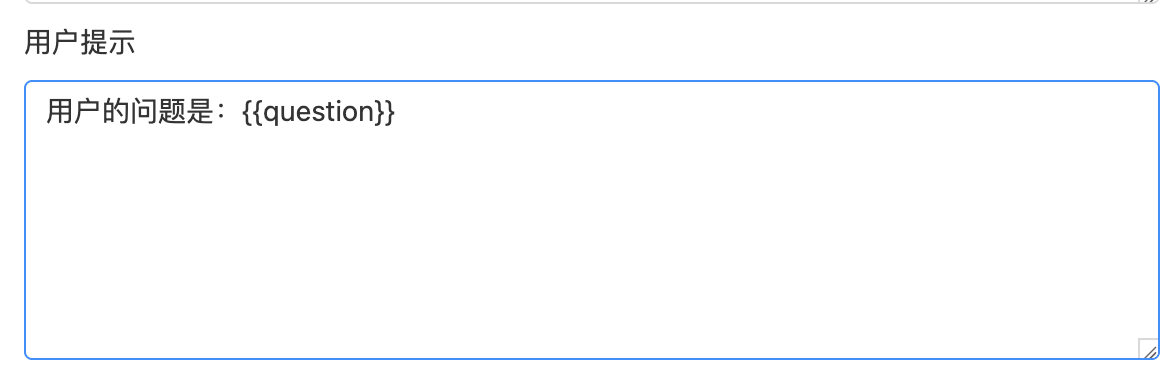 用户提示词代表当前轮对话中用户的提问或指令内容,是传递给模型的实际任务描述。同样支持通过 {{变量名}} 动态引用变量,增强指令的灵活性和实用性。