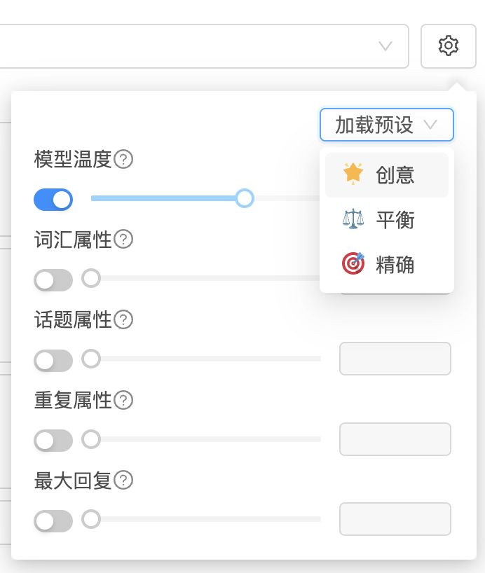 - 增加该值可提升对话内容的拓展性;