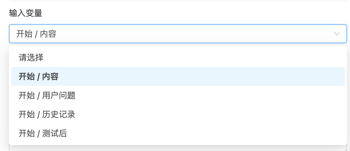 在节点的右侧配置面板中,可以通过下拉框选择变量的来源。变量必须来自当前节点之前的节点(通过连线连接),不能引用后续或并行节点的数据。