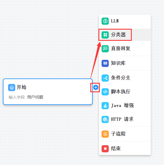 分类器节点可以让 AI 模型根据输入的内容,自动判断其类型或意图,并将内容流转到对应的工作流分支中。这使得智能系统能够实现更高效、更智能的流程自动化。