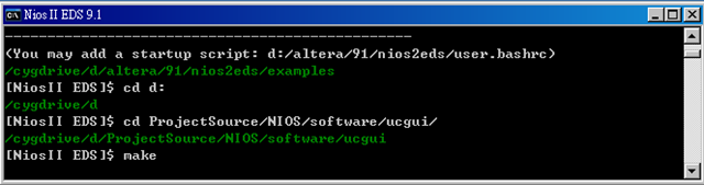 這裡是採用撰寫makefile然後在 nios eds的command shell進行編譯產生libucgui.a