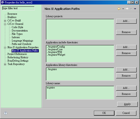 (2)於nios project中加入library及include路徑