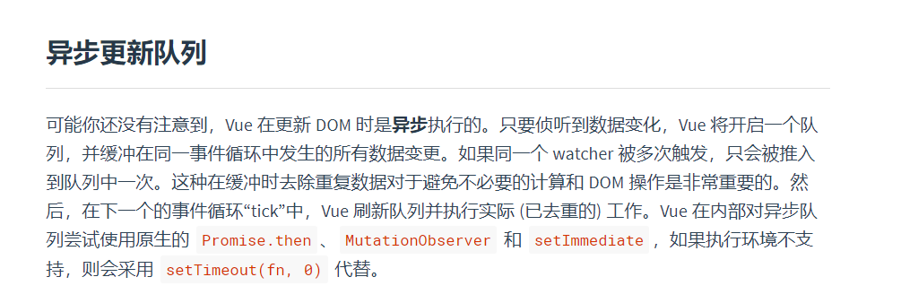 而有的时候我们就需要在DOM更新完成之后再执行操作 但是因为DOM更新是异步的 我们的写的代码又是同步的 就会出现错乱 我们的代码并不会执行!那么我们把操作变成异步的不就好了吗?