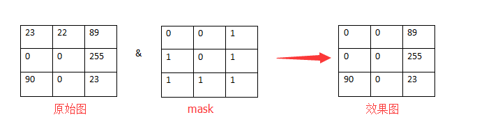 原图中的每个像素和掩膜中的每个对应像素进行与运算。比如1 & 1 = 1;1 & 0 = 0;
