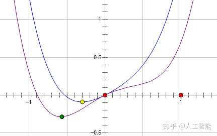 如果加上L2正则,损失函数L为 ,对应的函数是蓝线,最优点是黄点。