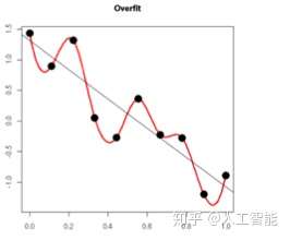如下图所示,就是过拟合的情况,拟合函数考虑到了每一个样本点,最终形成的拟合函数波动很大,也就是在某些很小的区间里,函数值的变化很剧烈。这就意味着函数在某些小区间里的系数非常大,就是模型中的w会很大。