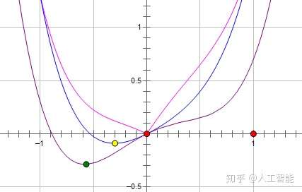 如果是加上L1损失,那么损失函数L是 ,对应的函数是粉线,最优点是红点,参数