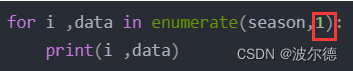 在for i , data in enumerate(trainloader, 0)中我们常碰见0变为1,其实就是将索引从0开始修改为从1开始,那么i,data 第一次循环时分别就是 1 、spring ,第二次循环就是 2 、 summer
