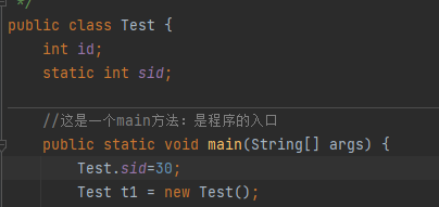 /** * @Auther:liu * @Date:-17:11:01 * @Description:IntelliJ IDEA * @Version:1.0 */ public class Demo { int id; static int sid; public void a(){ System.out.println(id); System.out.println(sid); System.out.println("------a"); } //1.static public 都是修饰符,并列的没有先后顺序,先写谁后写谁都行 static public void b(){ //System.out.println(this.id);//4.在静态方法中不能使用this关键字 //a();//3.在静态方法中不能访问非静态方法 //System.out.println(id);//2在静态方法中不能访问非静态的属性, System.out.println(sid); System.out.println("------b"); } //这是一个main方法:是程序的入口 public static void main(String[] args) { //5 非静态的方法可以用对象名.方法名去调用 Demo d=new Demo(); d.a(); //6.静态方法可以用 对象名.方法名调用 也可以用类名.方法名(推荐) Demo.b(); d.b(); } }