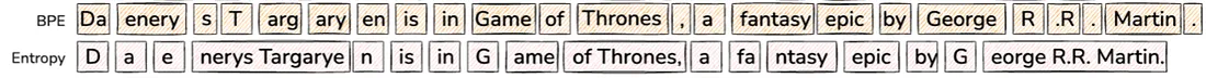 换句话说,模型会问自己:“根据前面的单词,我看到这个字节有多意外?” 如果答案是“很意外”,模型就会结束前一个块,开始一个新块。这个过程听起来很复杂,但用一个例子就可以说明白。