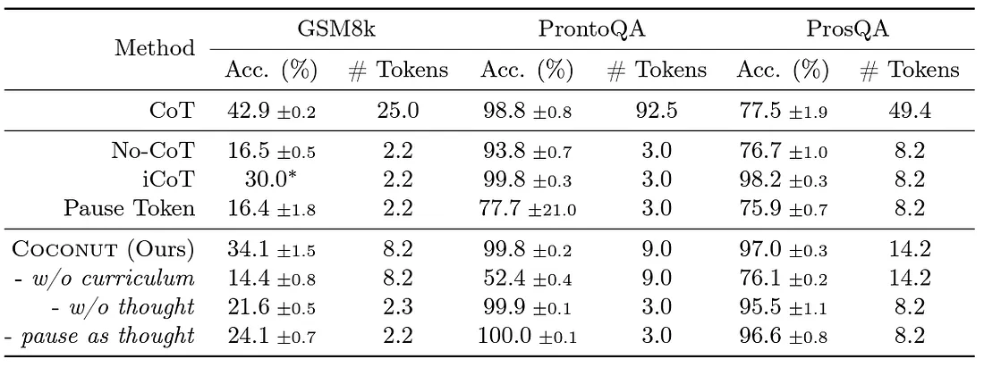 COCONUT在几乎所有任务中的推理能力都有所提升。来源:Meta