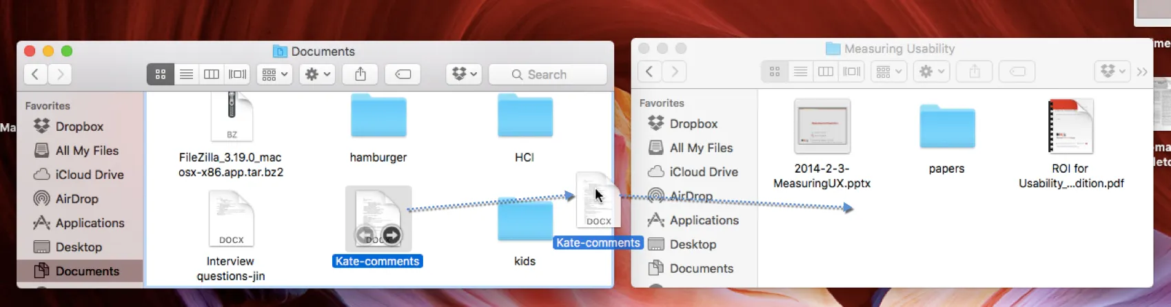 举个例子,你需要把一个文件从一个文件夹移动到另一个文件夹——这是一个典型的直接操作案例——你看到文件,抓住它,然后拖到目标位置。