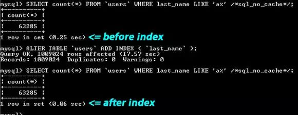 你也应该明白什么样搜索可以不使用有规律的索引。例如,当搜索一个单词时(例如,”WHERE post_content LIKE ‘%apple%'”),你将不会看到普通索引的好处。你最好使用 mysql 全文搜索或者构建你自己的索引解决方案。