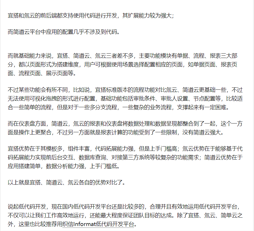 宜搭和简道云、氚云比起来有什么优劣之处?