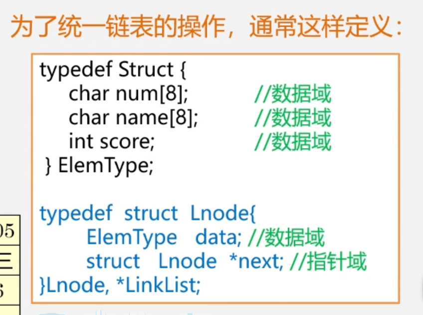 }Lnode,*LinkList; //LinkList为指向结构体Lnode的指针类型