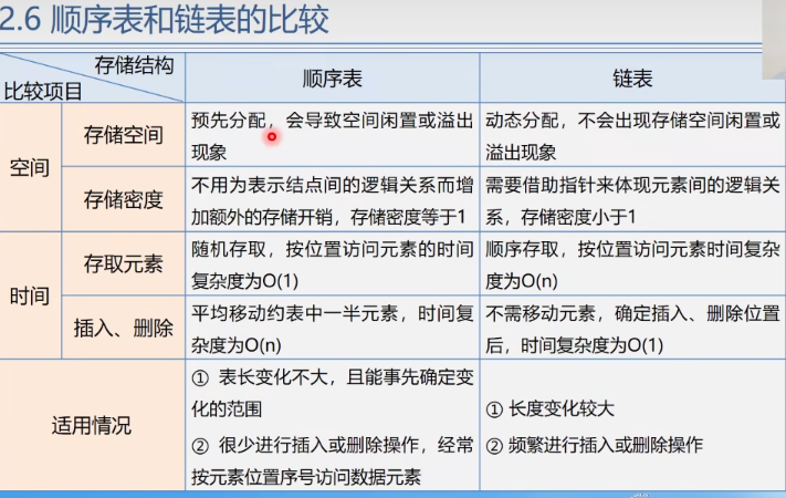 - 一般地,存储密度越大,存储空间的利用率就越高。显然,顺序表的存储密度为1(100%),而链表的存储密度小于1.