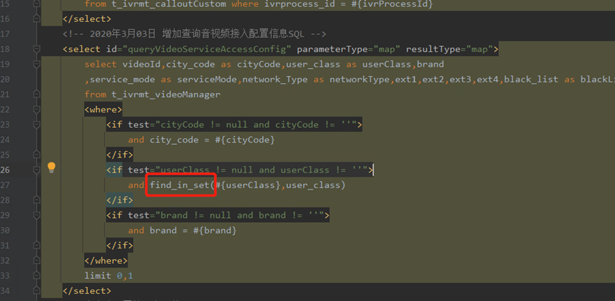 判断list <if test="countryList == null or countryList.size == 0"> 是否在集合中: <if test="roleSet != null and roleSet.size > 0"> and t.AUDIT_ROLE in <foreach collection="roleSet" item="role" open="(" close=")" separator=","> #{role,jdbcType=VARCHAR} </foreach> </if>