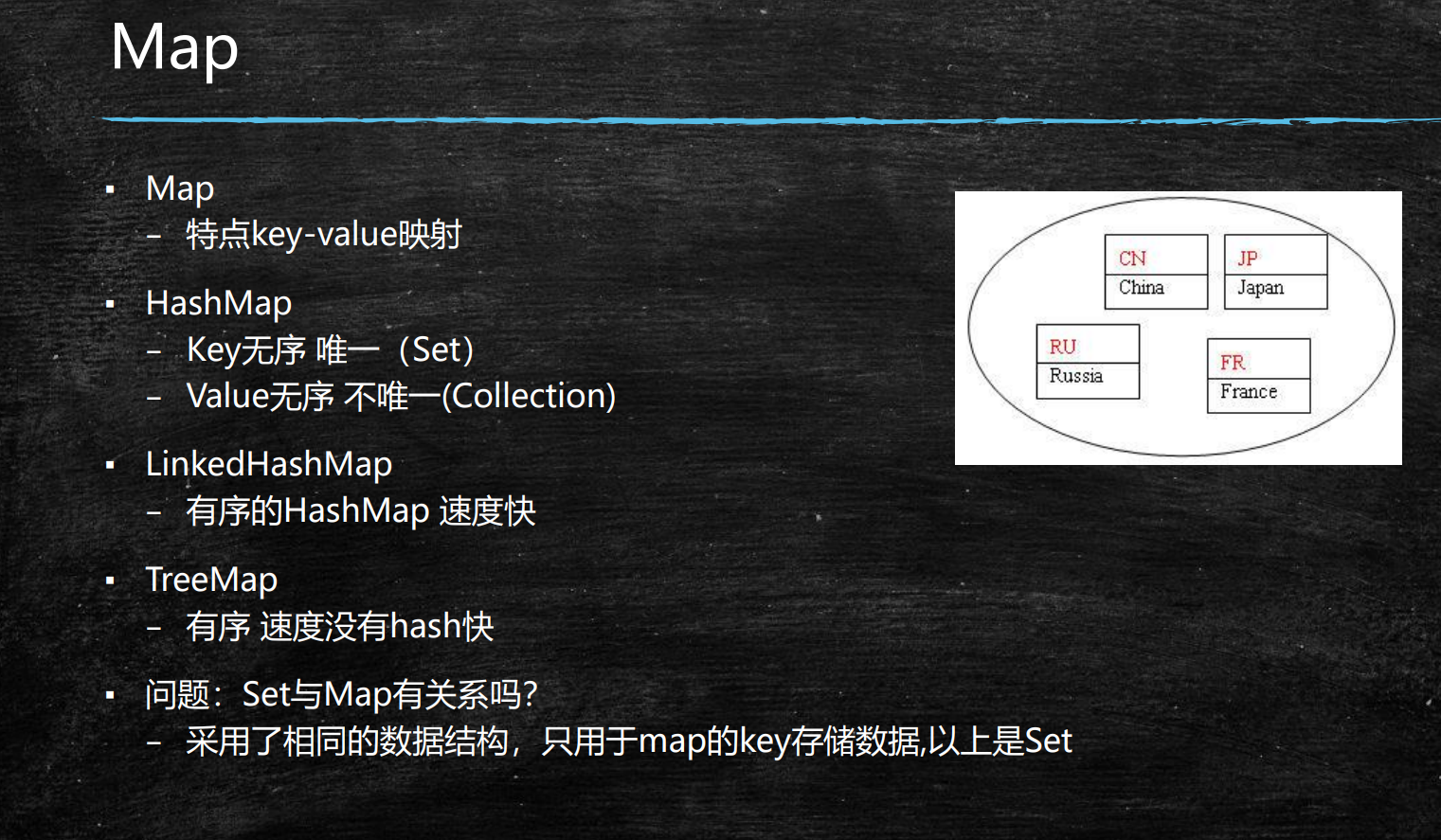 二、set set是无序的且不重复的集合。常见的实现有hashSet和TreeSet和LinkHashSet。