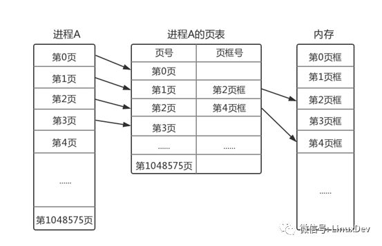 e. 进程的页,不管有没使用,都完整记录在页表中。例如从第0页到最后的第1048575页,都记录在进程A的页表中。