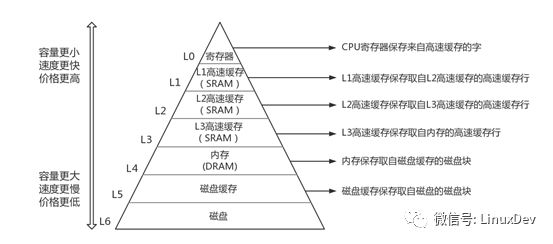 a. 从L0到L6的7个层次,都是硬件设备,并不是软件的概念。尤其注意图中的高速缓存,常称为cache,与Page Cache等的差异,前者是实在硬件设备,后者是软件上的概念