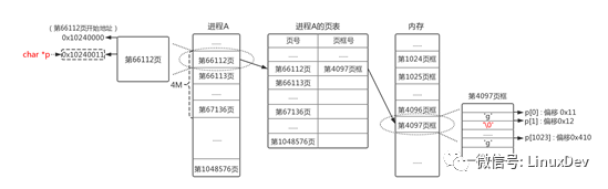 假设malloc返回p的值是 0x10240011,表示虚拟地址 [0x10240011, 0x10640011) 的4M空间被这次malloc申请成功。那么其对应的虚拟页号和页内偏移如何计算呢?