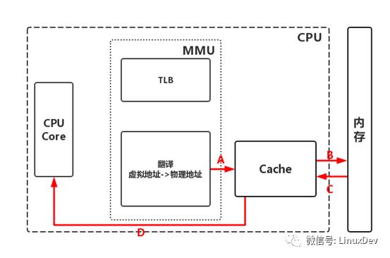 【A】MMU获取物理地址后,根据物理地址查询高速缓存。高速缓存命中,CPU直接从高速缓存获取数据