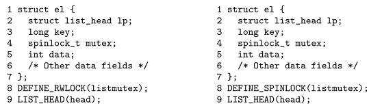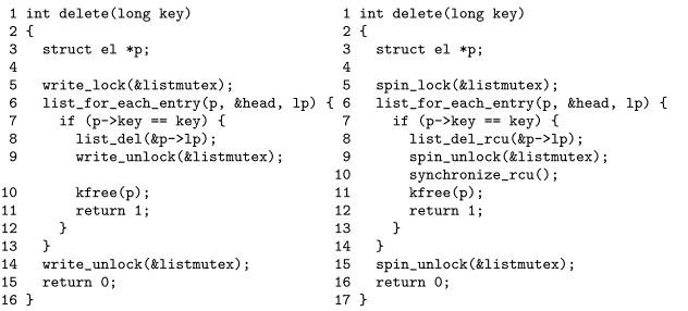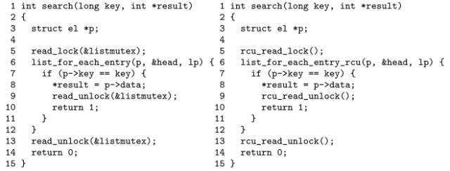 将读写锁转换成RCU非常简单,如下: