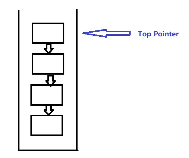 对于单向链表构成的栈,例如【A→B→C→D】,其中A是作为“栈顶”,D是作为“栈底”;即在一个竖直摆放的、用单向链表实现的栈中,每个node间的next指针是垂直向下指底的。Pop和Push操作均在如 (图1) 所示的Top栈顶上操作。