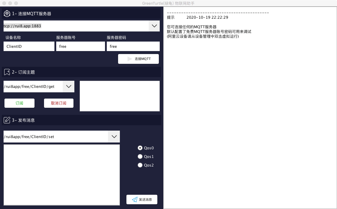 绿龟GreenTurtle阿里云物联网助手For Mac V0065 (带免费MQTT服务器账号密码)