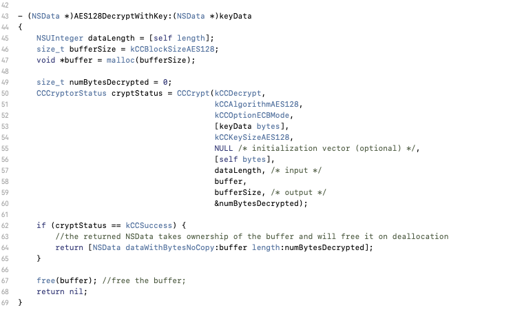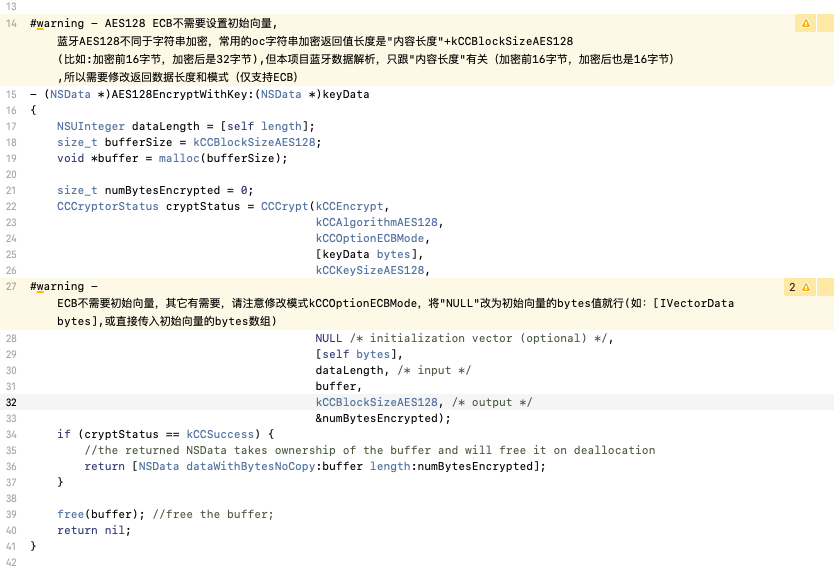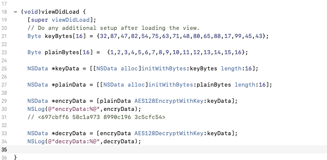 发送16个字节,加密后也是16个字节。没办法啊,只能去看AES128 ECB加密的代码了。后面发现确实之前的加密后结果长度 = 内容长度 + kCCBlockSizeAES128的长度,几番折腾,终于可以了,现在把修改好的代码发出来。