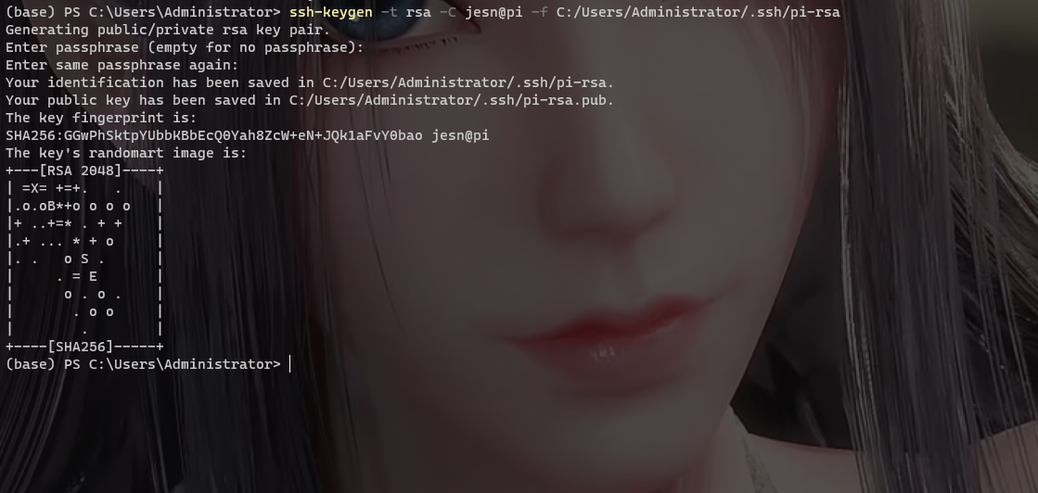 ssh-keygen -t rsa -C jesn@pi -f C:/Users/Administrator/.ssh/pi-rsa