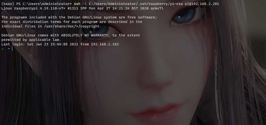 ssh -i C:/Users/Administrator/.ssh/raspberry/pi-rsa pi@192.168.1.201