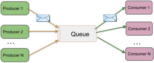- 发送到队列中的消息被一个而且仅仅一个接收者所接收,即使有多个接收者在同一个队列中侦听同一消息