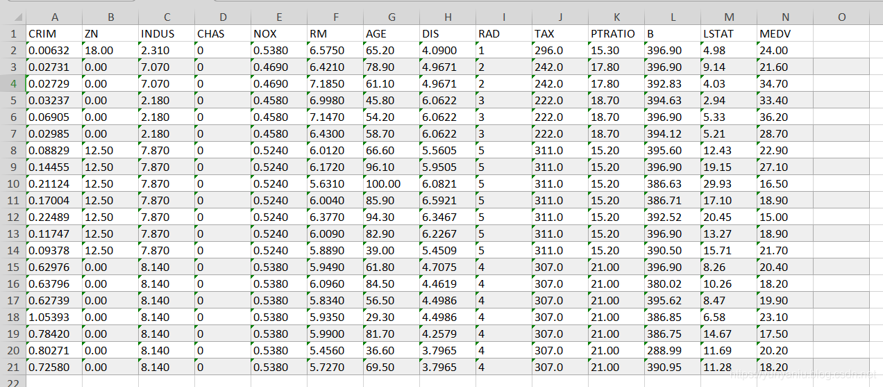 - MEDV - 自有住房的中位数报价, 单位1000美元 ------【自住房屋房价中位数】