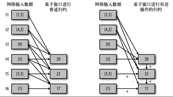 这种特殊形式需要提供归约函数的一个逆函数,比 如 + 对应的逆函数为 -。对于较大的窗口,提供逆函数可以大大提高执行效率。
