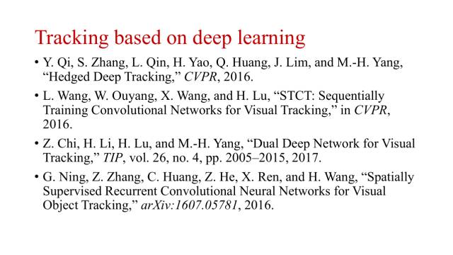 随着深度学习的火热,从2015年开始,利用深度学习进行目标跟踪的研究工作越来越多。