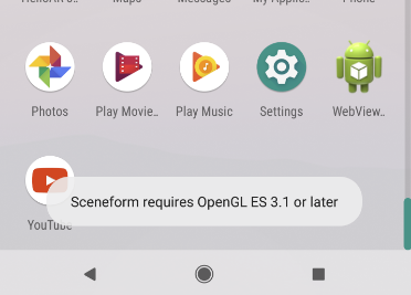 If you see ver 3 1, then you can run Sceneform apps. If you see a lower version, then your desktop GPU does not support OpenGL ES 3.1 and you must use a supported device to run Sceneform apps.