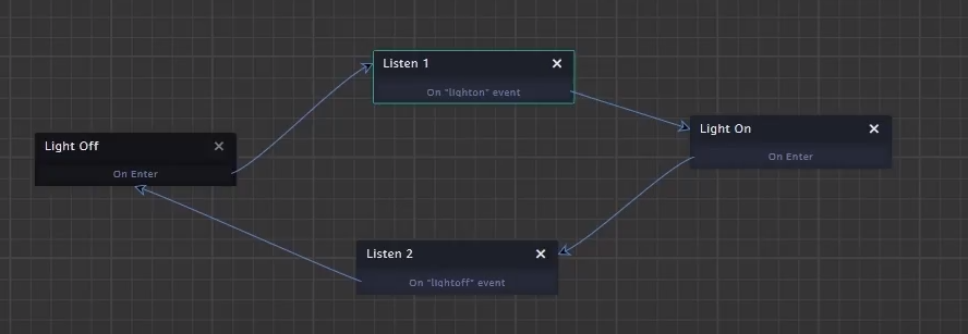 1. Add component --> State machine --> "Add a new behavior to the component." --> State machine IDE