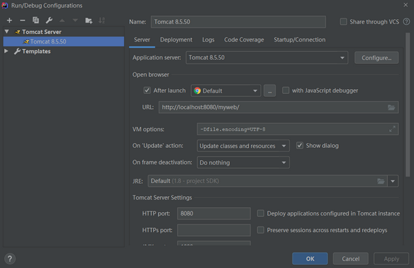 - 步骤四:打开IDEA中窗口中Tomcat的Edit configurations,在VM options文本框中添加-Dfile.encoding=UTF-8